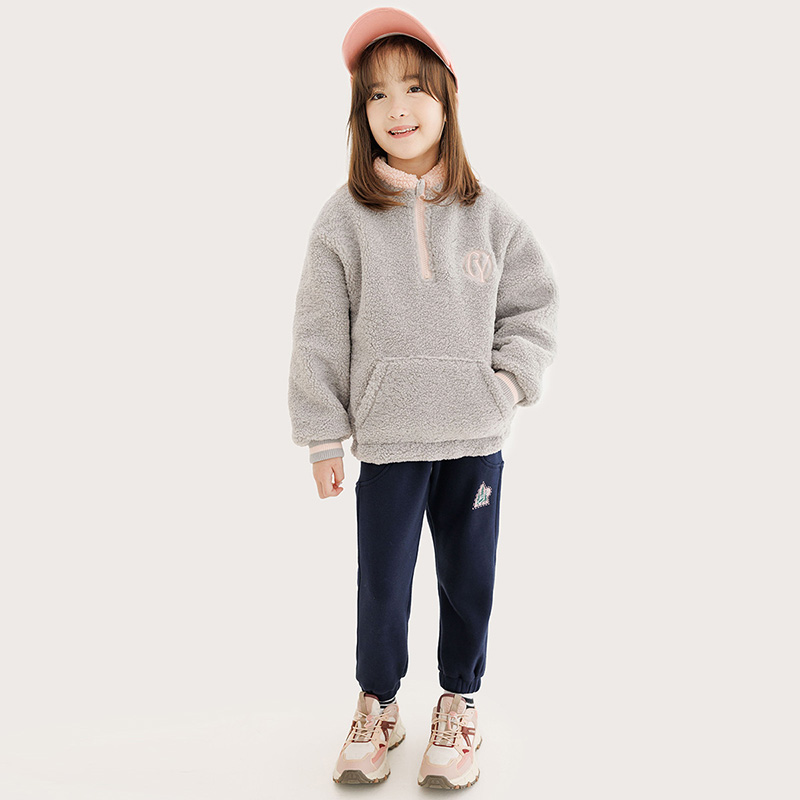 纯一良品童装女童卫衣秋冬新品中大童加厚摇粒绒撞色立领上衣女孩