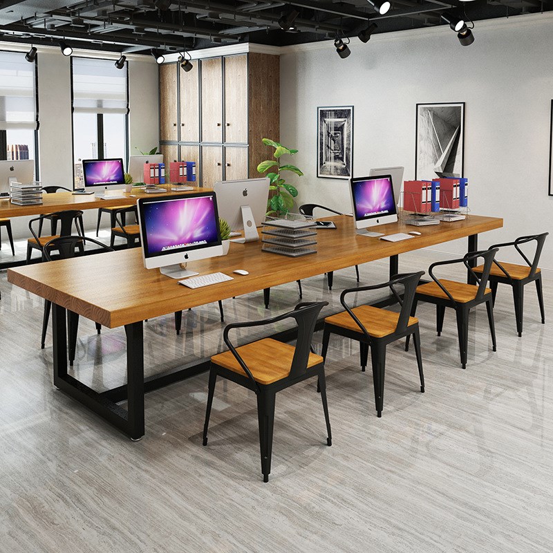 办公桌家用老板职员工位实木小型原木家具书桌简约现代会议桌长桌 - 捻灿百货