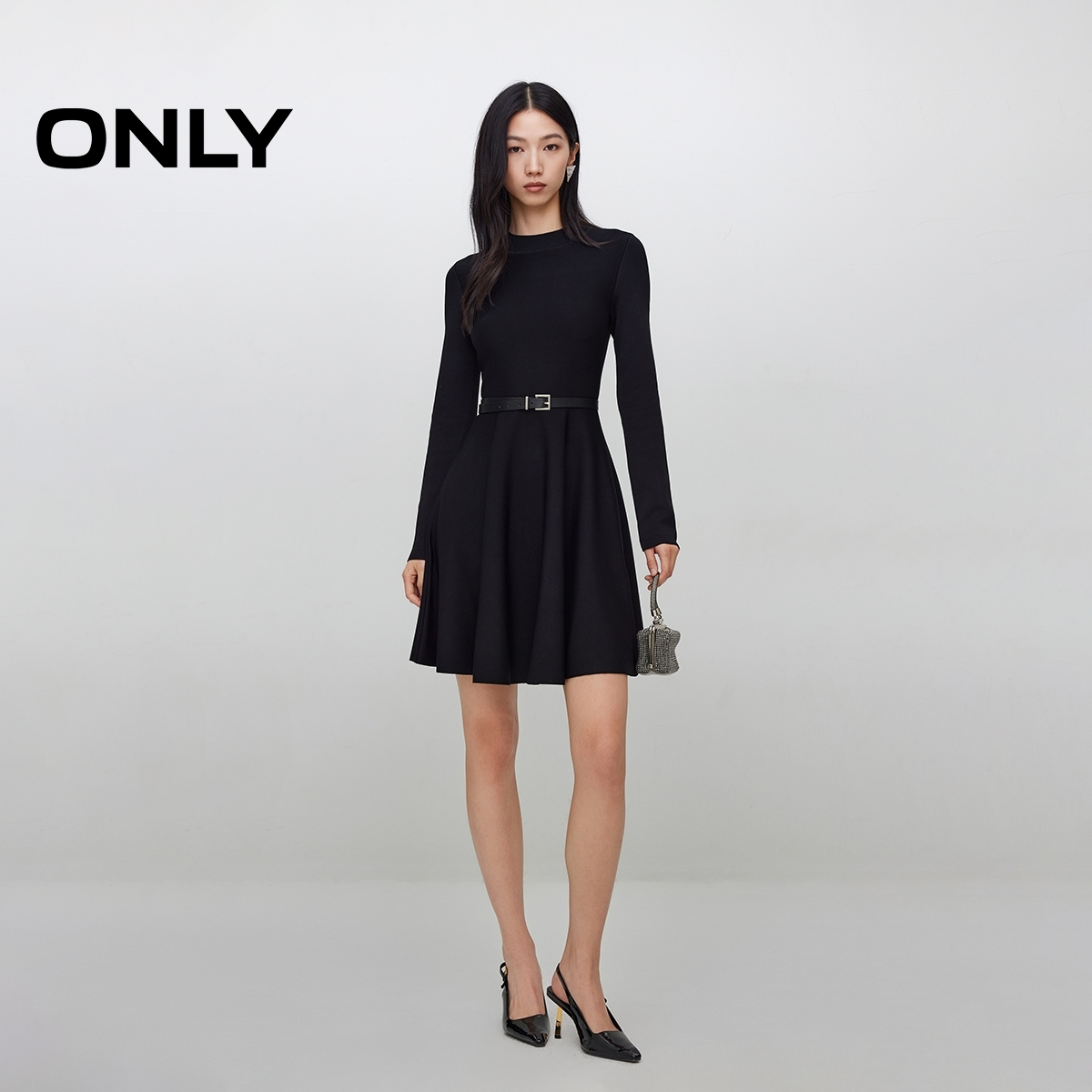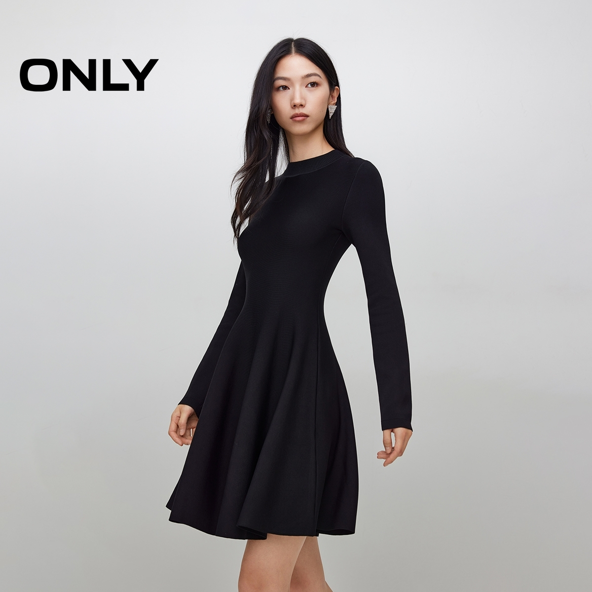 ONLY2025秋季新款圆领针织立裁设计纯色长袖小黑裙短裙连衣裙女 - ONLY官方旗舰店