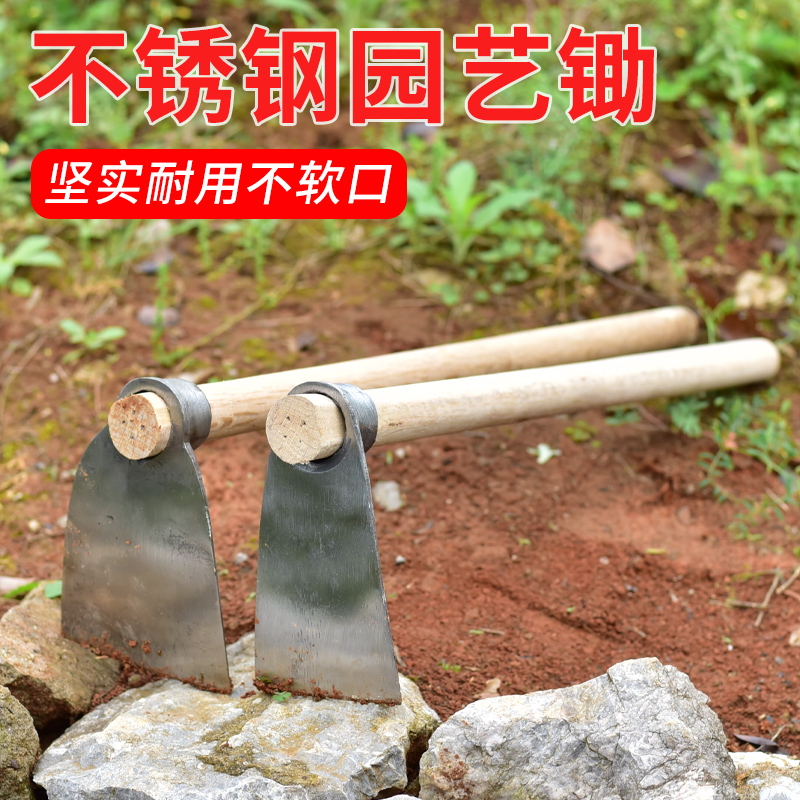 挖地种菜挖土锄草不锈钢小锄头挖野菜农用全钢锄头家用小除草圆孔 - 石泉漱星商城
