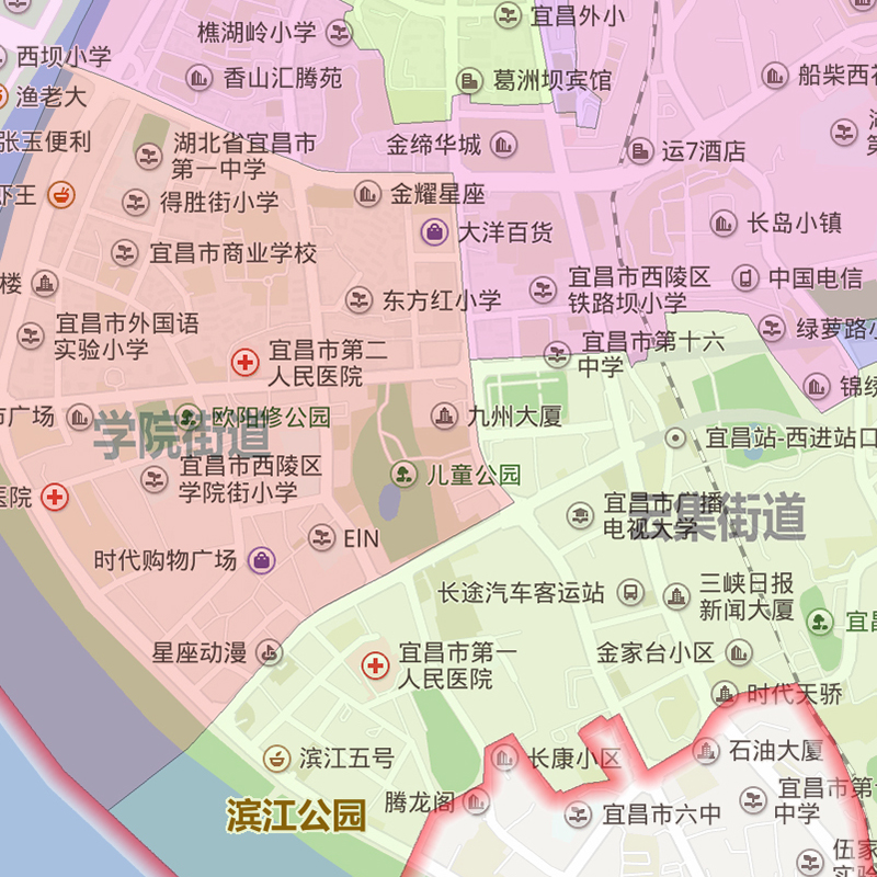 西陵区地图90cm办公室装饰画湖北省宜昌市区域颜色划分高清新款 - 电子地图绘制中心