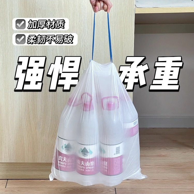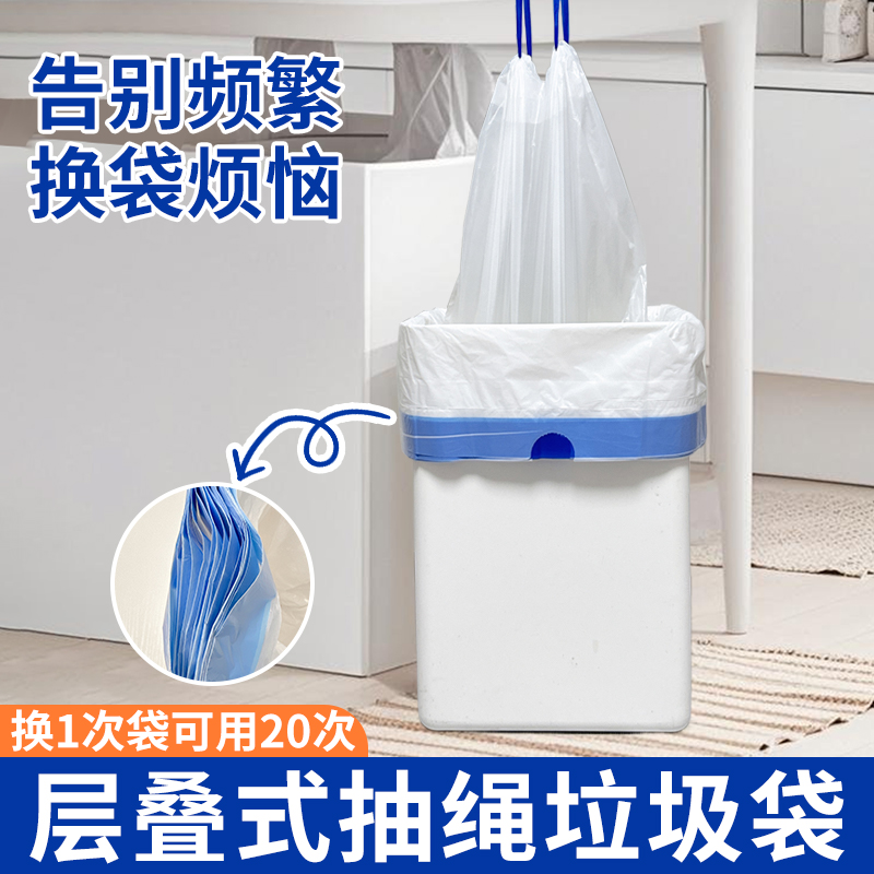 层叠式抽绳垃圾袋加厚家用宿舍学生免撕手提大号收口塑料袋方便实 - 速洁家居