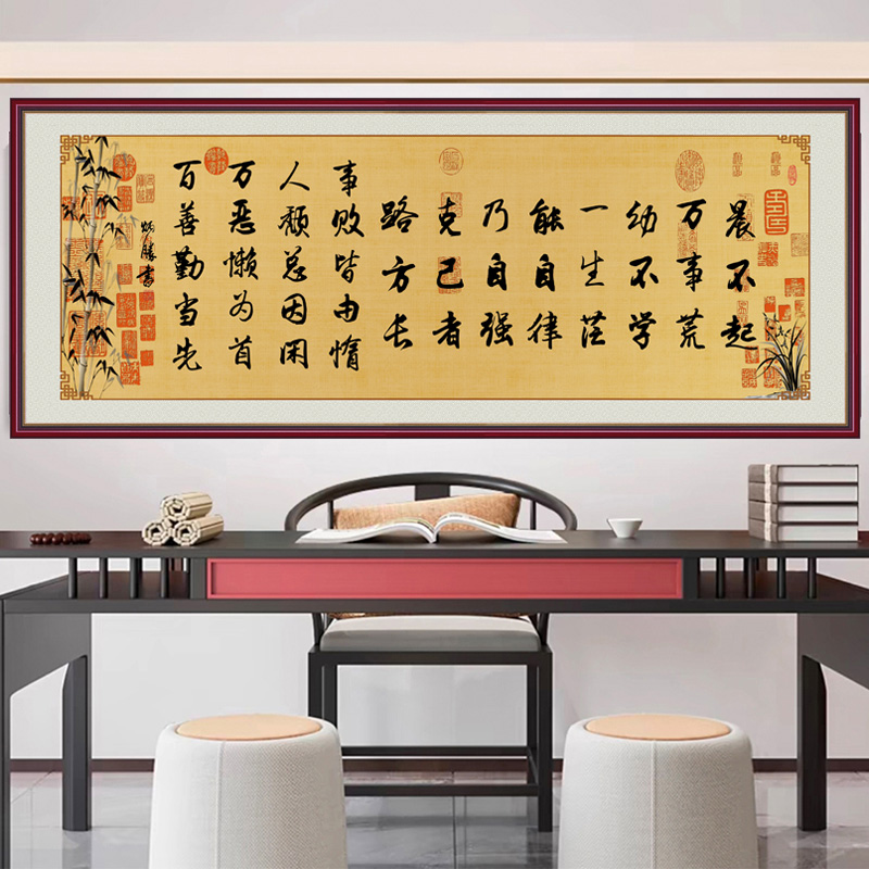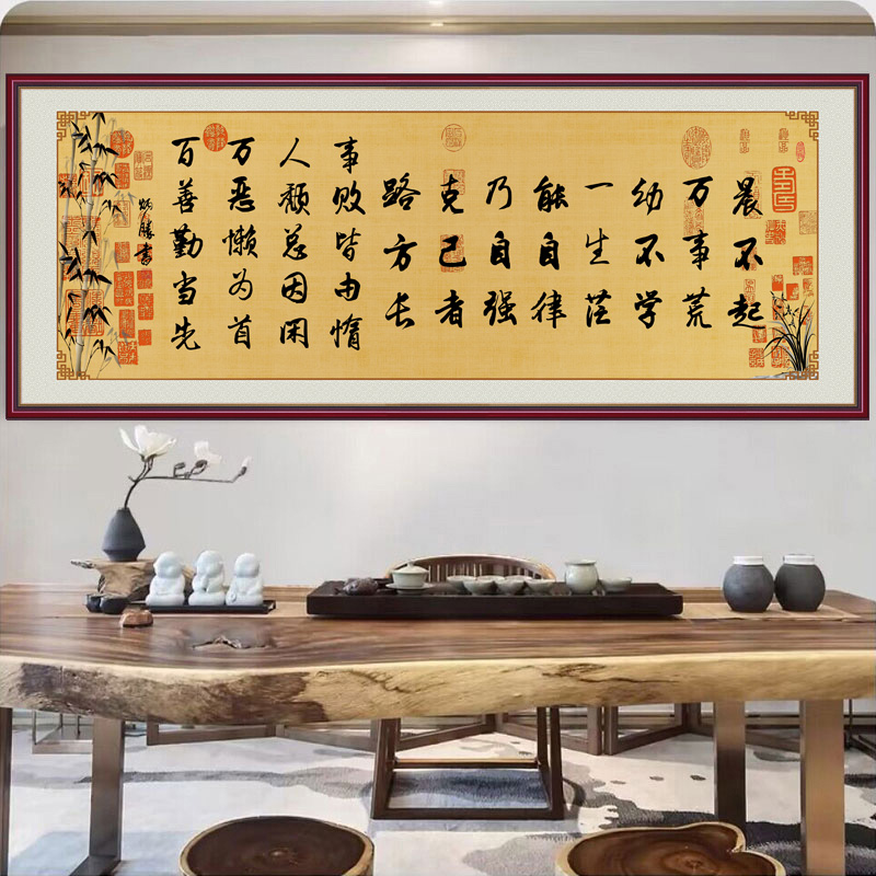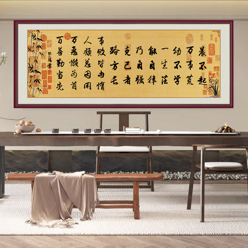 晨不起万事荒书法字画客厅书房办公室挂画自粘贴画学生励志文字贴 - 豪咖旗舰店