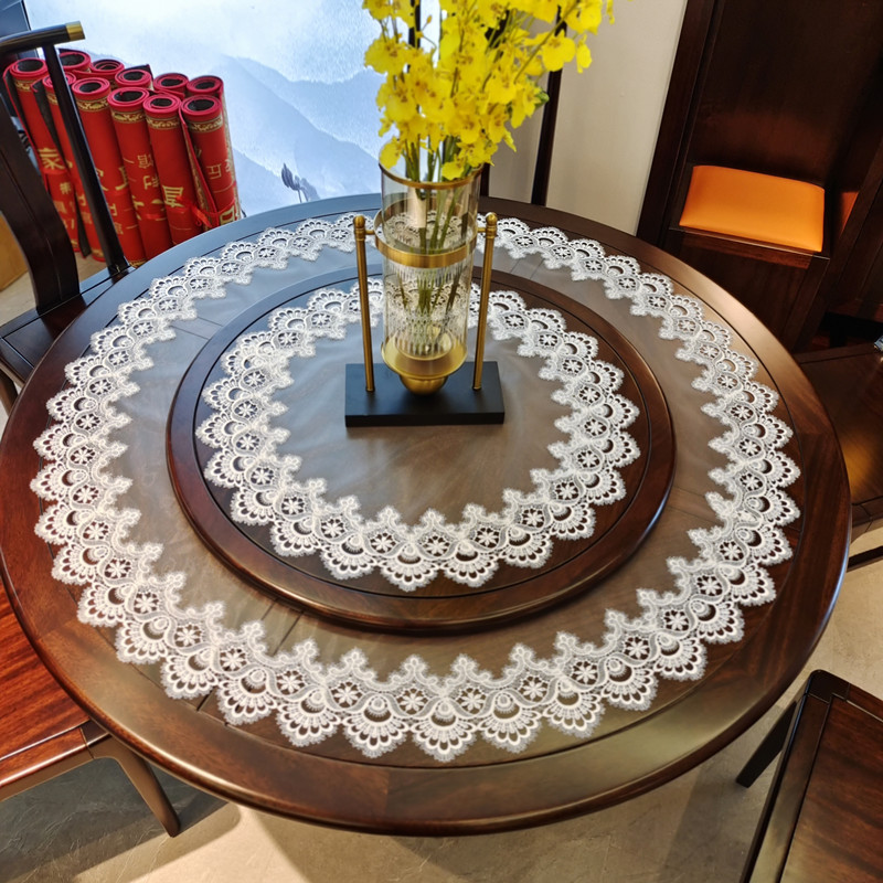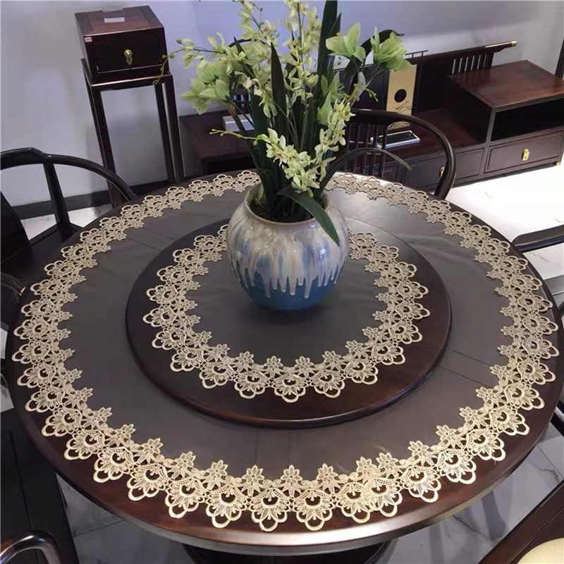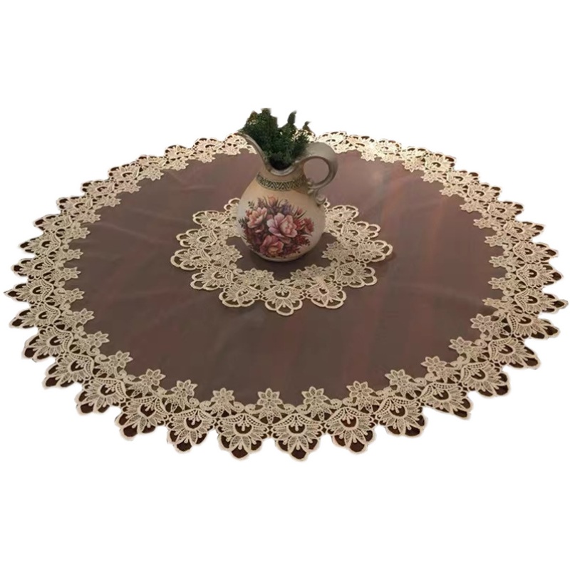 高端 私人定制圆形奢华网纱蕾丝桌布餐桌茶几空调盖巾布艺大圆桌 - 湖海咖啡店