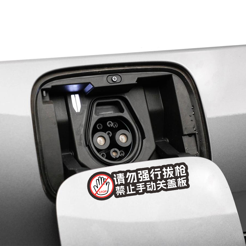 请勿拔枪禁止强关盖板贴纸适合特斯拉MODEL3/Y新能源汽车充电口贴