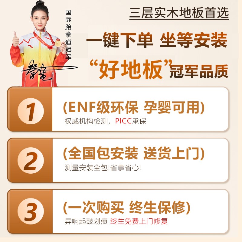 新三层实木复合地板家用防水耐磨ENF级环保锁扣奶油风地暖木地板 - 续貂狗尾商城