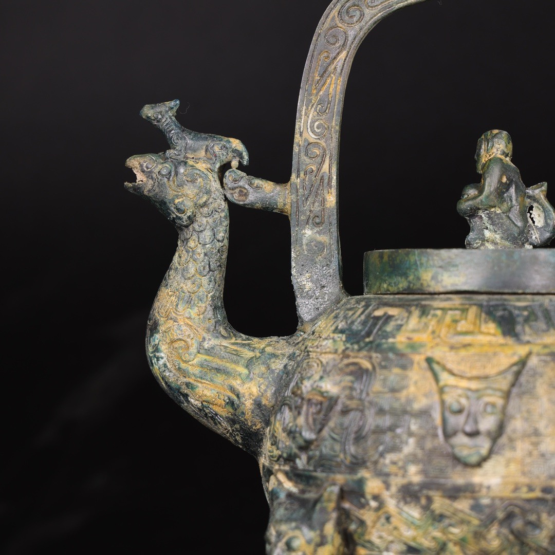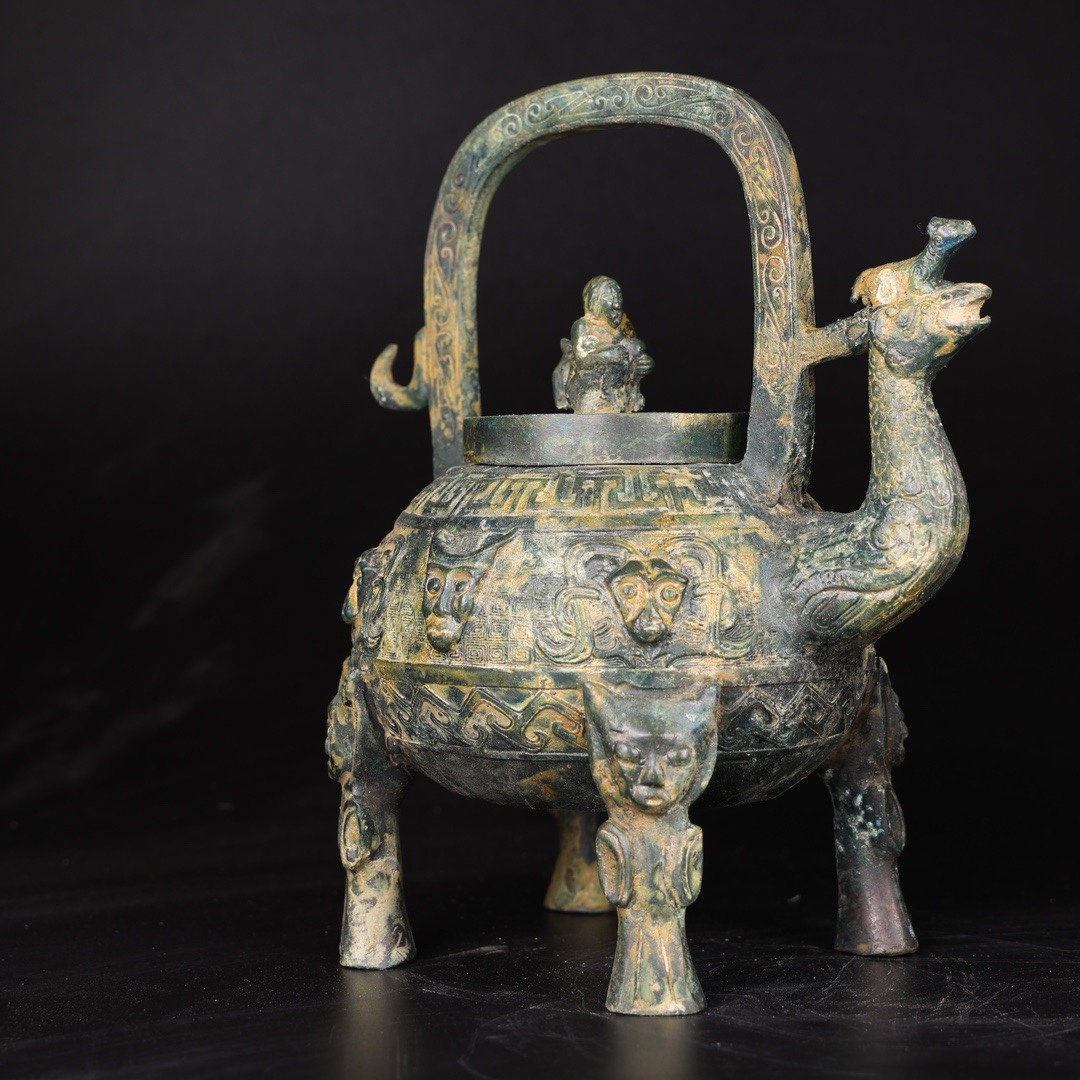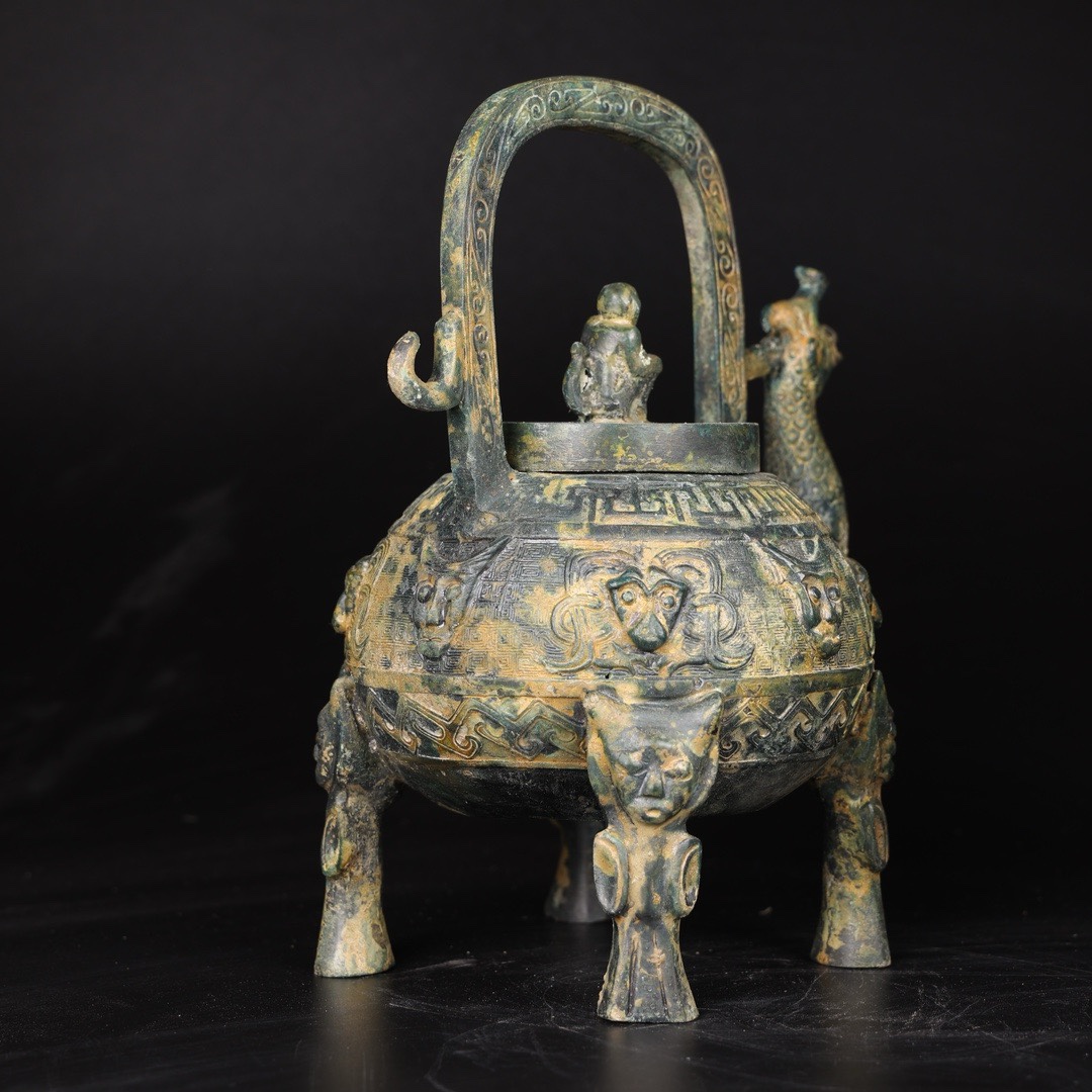 【凤首盉】青铜商代提梁凤头盉摆件盛水与酒器水调和酒工艺品把玩 - 铜祥德仿古青铜器