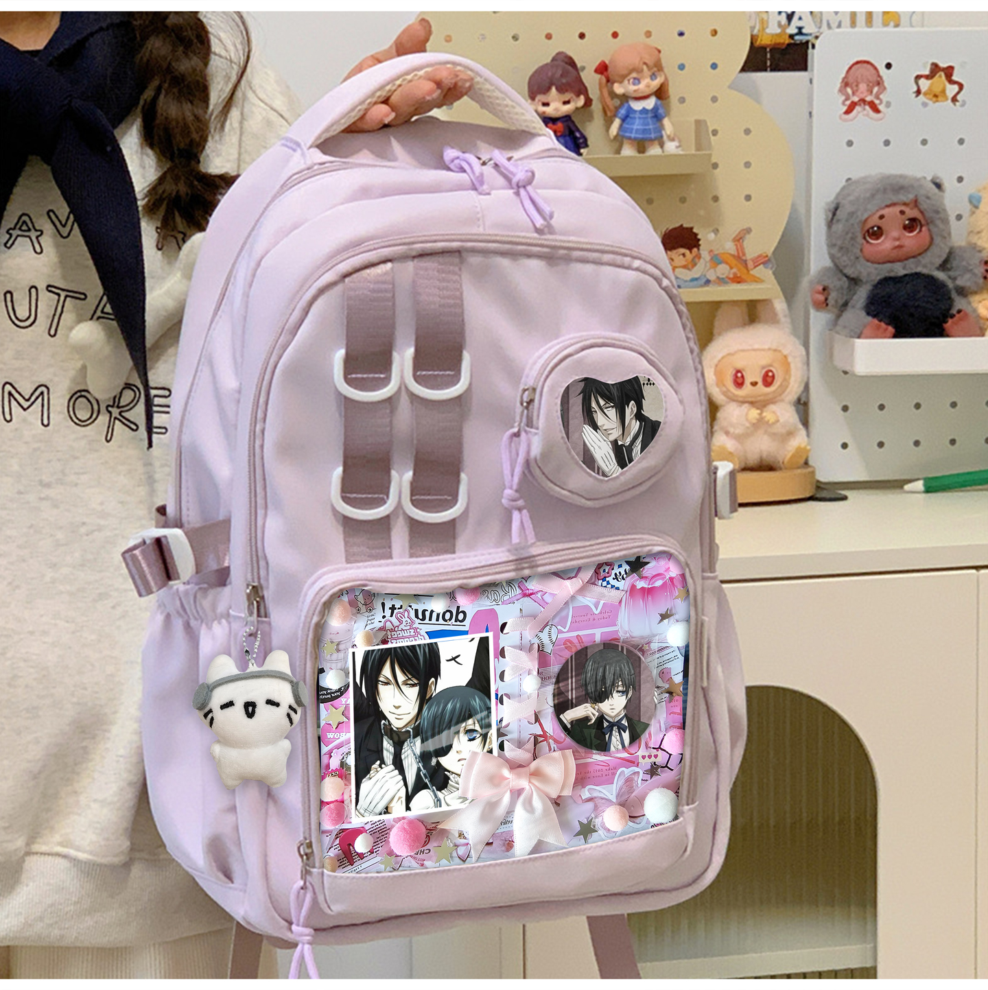 您的位置:他他商城  >  箱包  >  黑执事夏尔塞巴斯蒂安吧唧痛包卡片双肩包书包学生女大容量二次元