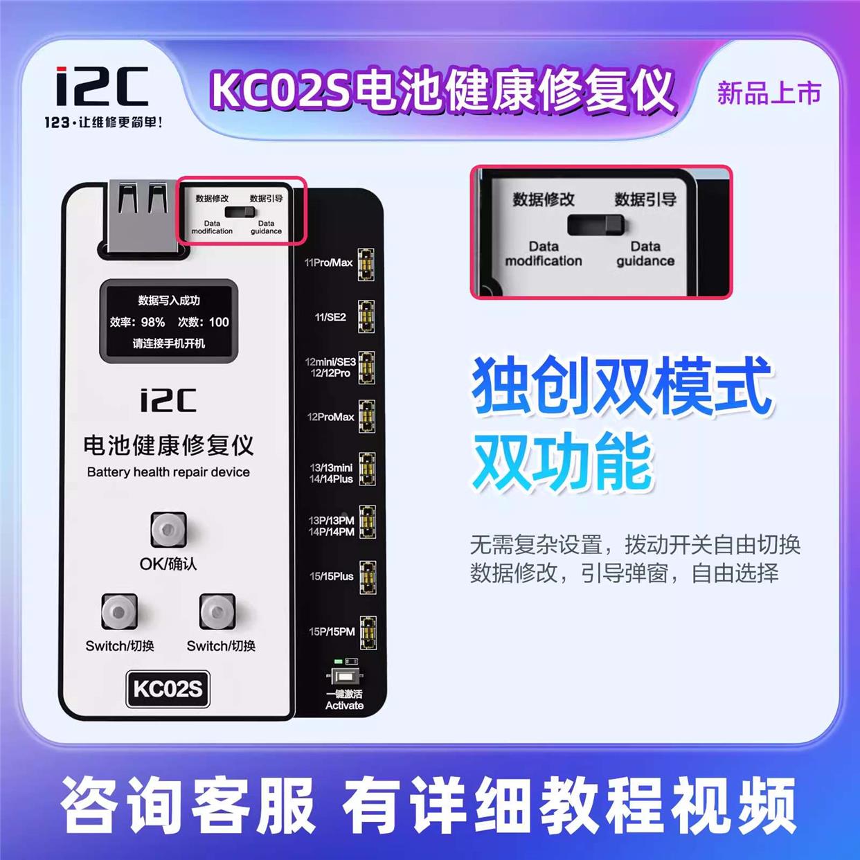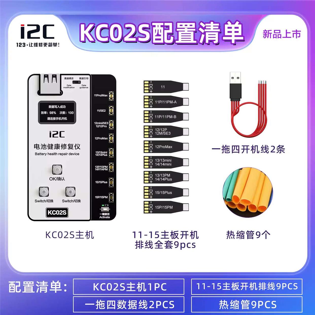 i2C KC02S电池健康修复仪 11-15PM 免电池外挂排线改效率100%