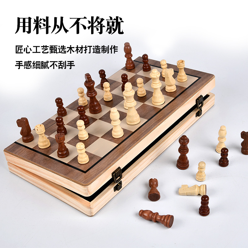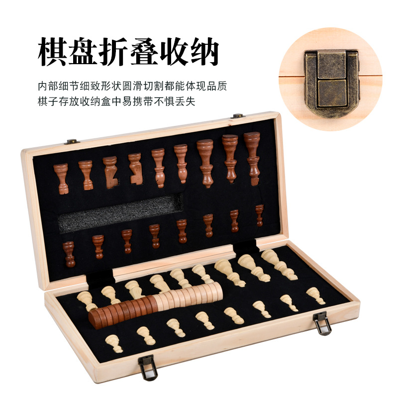 磁性国际象棋实木二合一套装大号儿童木质折叠棋盘国际跳棋子 - 永阳百货店1的小店55