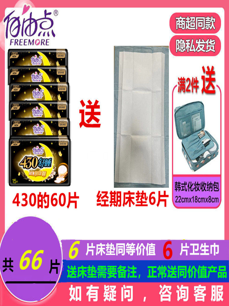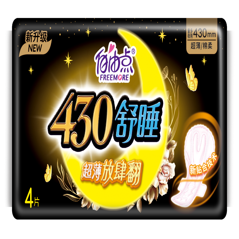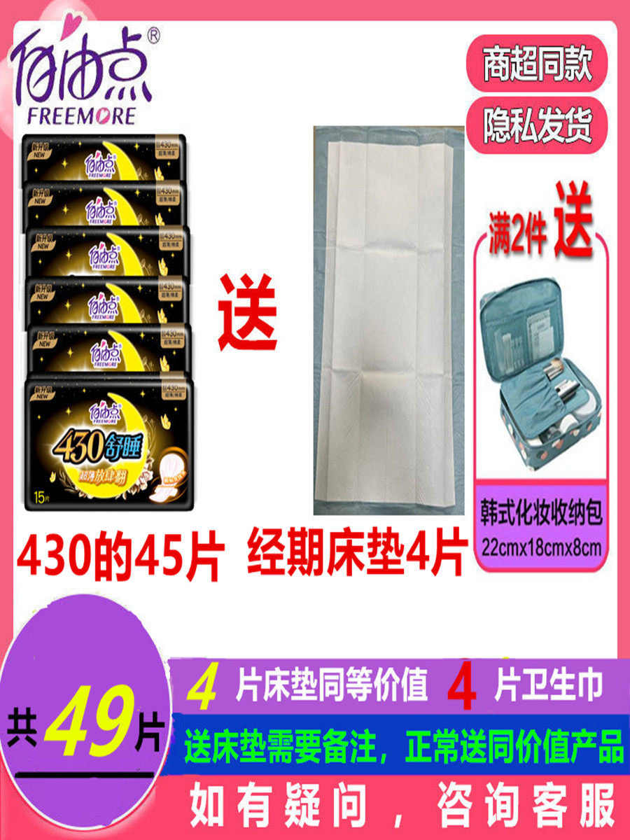 自由点卫生巾超长夜用舒睡430mm大包装亲肤纯棉柔透气姨妈巾女生 - 自由点精致家居生活馆