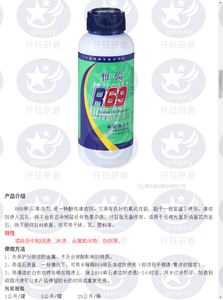 意大利进口雅伦R69麻石清洁剂除锈除黄砖塑料清洗剂酸性光面渗透 - 广州焕然酒店清洁抛光用品