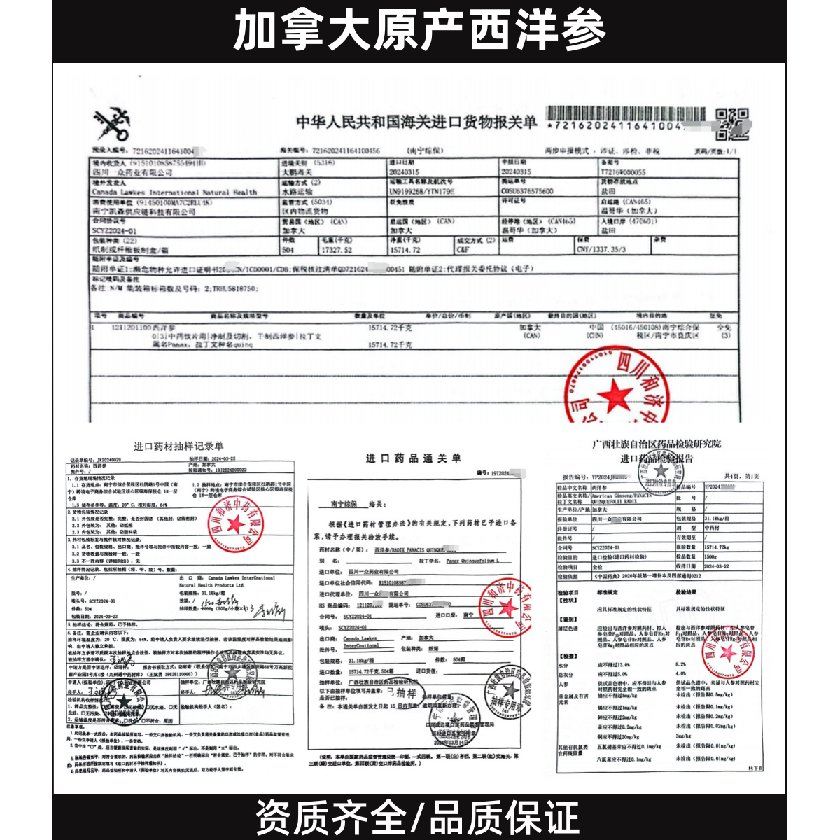 西洋参官方旗舰店正品加拿大原装进口粒头人参花旗参整根切片泡水