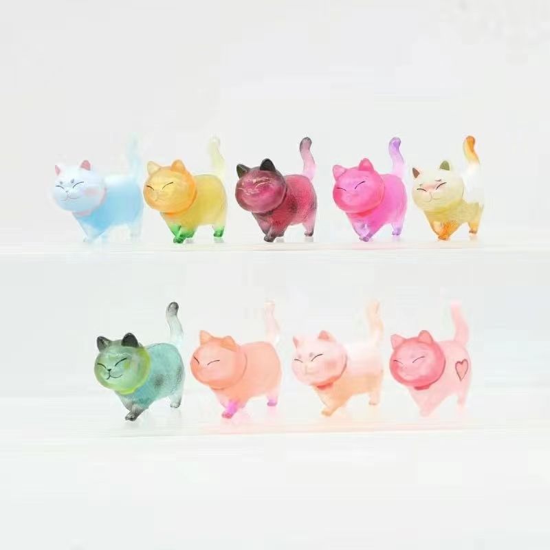 (一件代发)仿真猫咪超萌新品透明猫咪玩具套装铃铛公仔摆件礼物 - 卡萨高端车饰