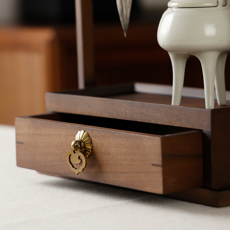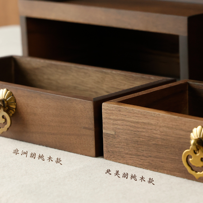 您的位置:他他商城  >   >  徽韵抽屉笔挂胡桃木加高文盒 文玩收纳盒置物架毛笔架摆件带抽屉复古创意文房四宝