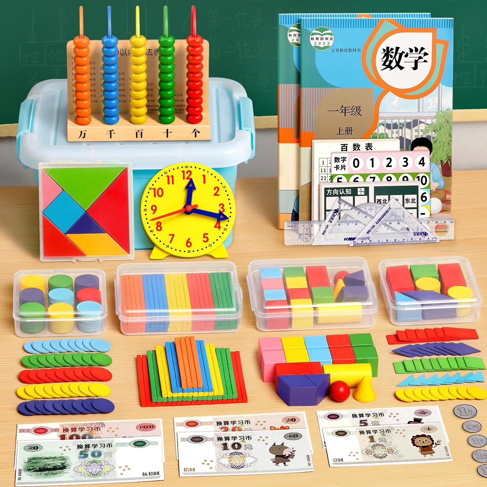 一年级数学教具全套二年级学具盒小学正方体长方体计数器钟表模型上册几何图形学习用品套装教师儿童开学必备