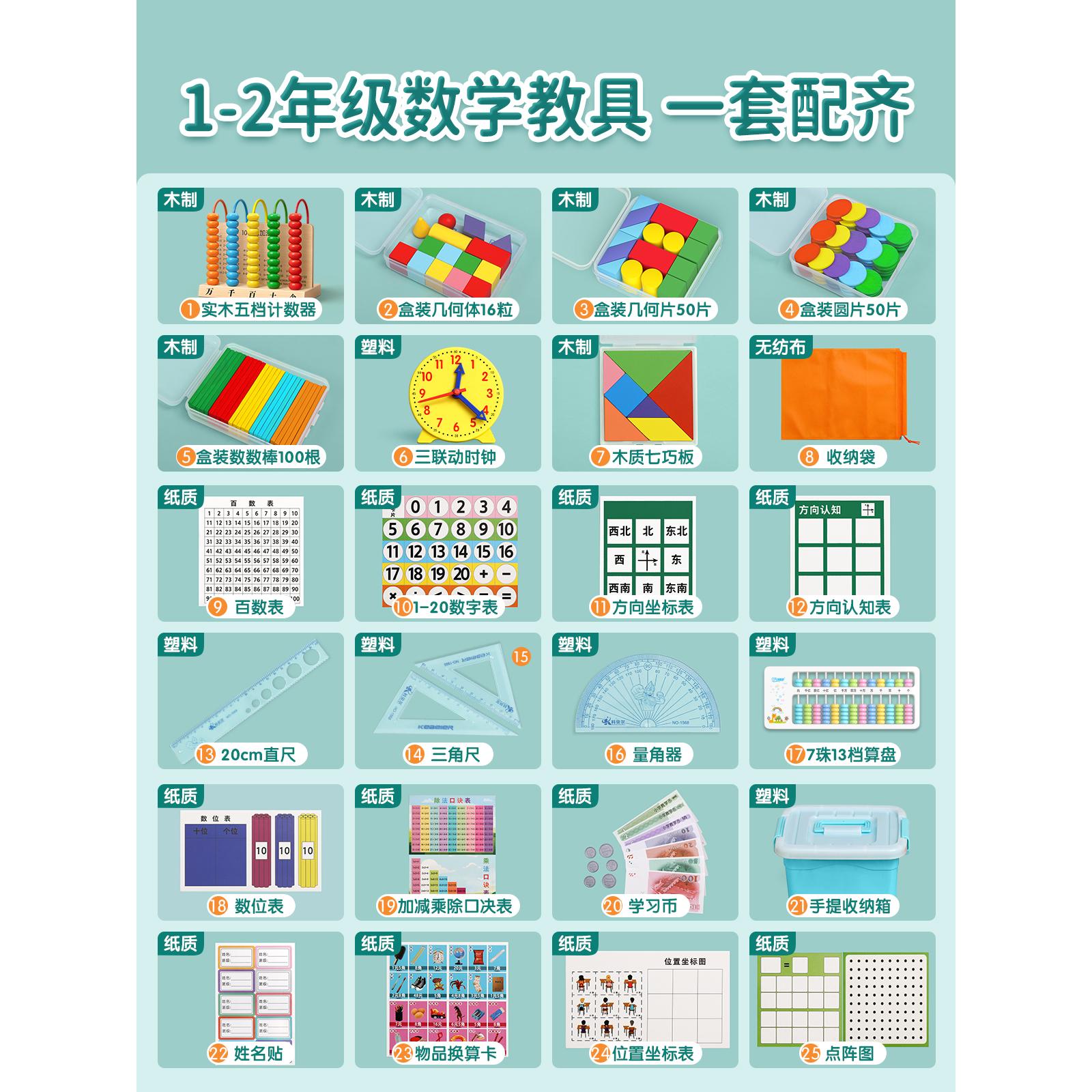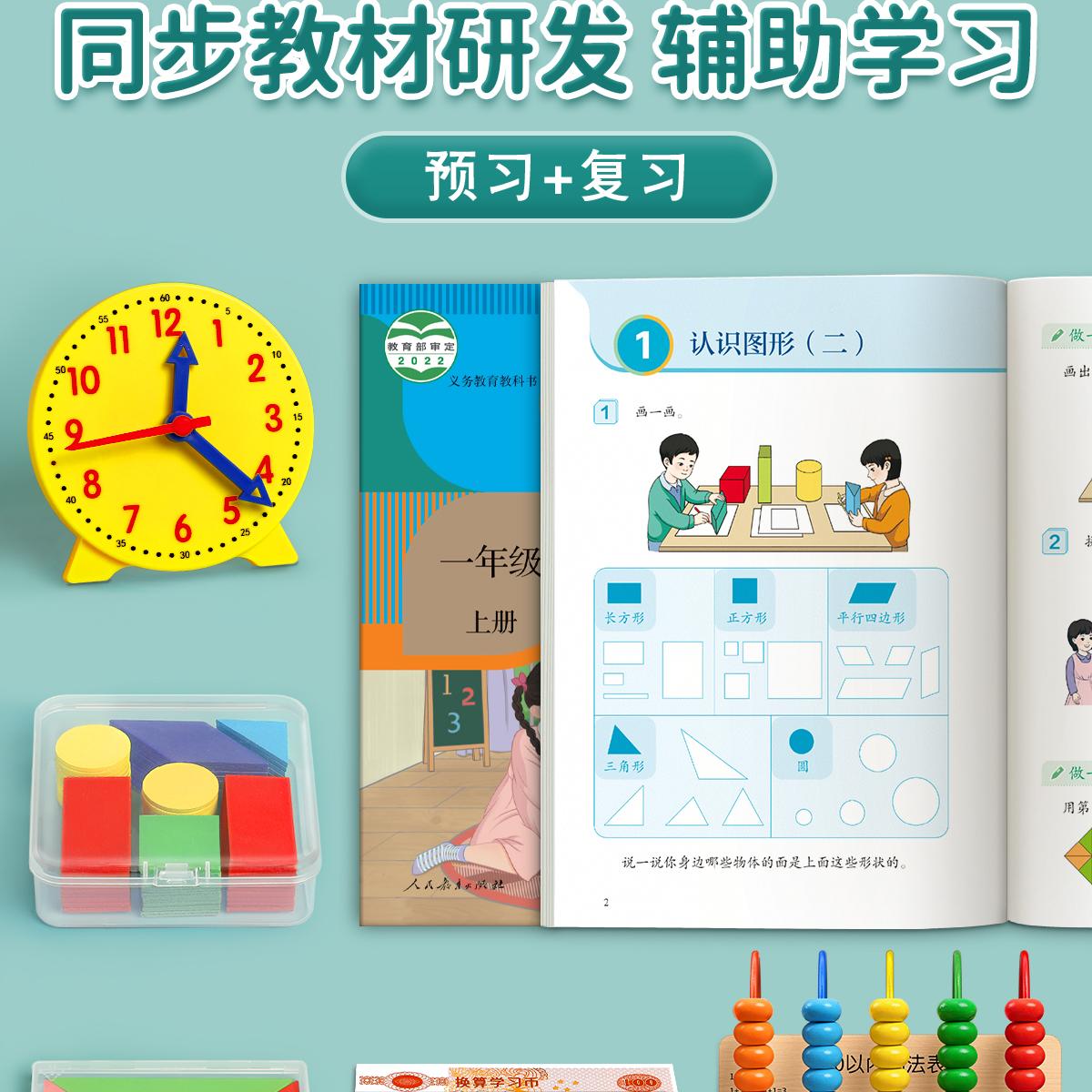 一年级数学教具全套二年级学具盒小学正方体长方体计数器钟表模型上册几何图形学习用品套装教师儿童开学必备 - 金枝叶办公用品旗舰店