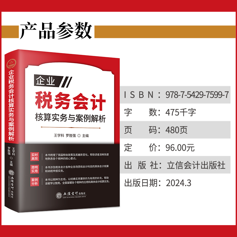 您的位置:他他商城  >   >  【2024年版】企业税务会计核算实务与案例解析 税务会计 会计核算 新税法 纳税申报实务 案例解析 立信会计出版社