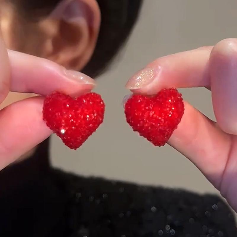 安可拉红爱心满钻耳钉女可爱气质S925银针耳环2025年新款爆款耳环 - 咕哩雅 集美 美饰
