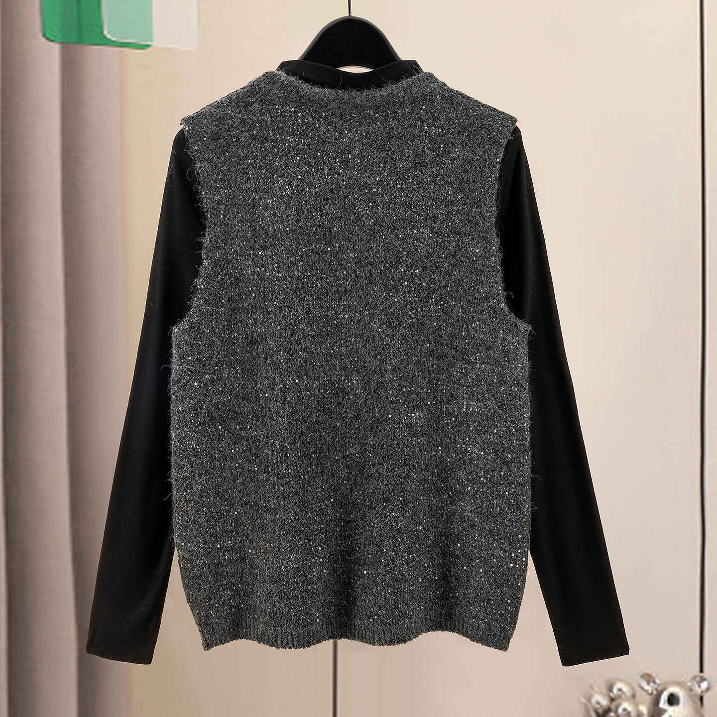 您的位置:他他商城  >  女装  >  她池宽松款马夹2025秋装新款女装设计感珠片丝巾V领套头叠穿马甲