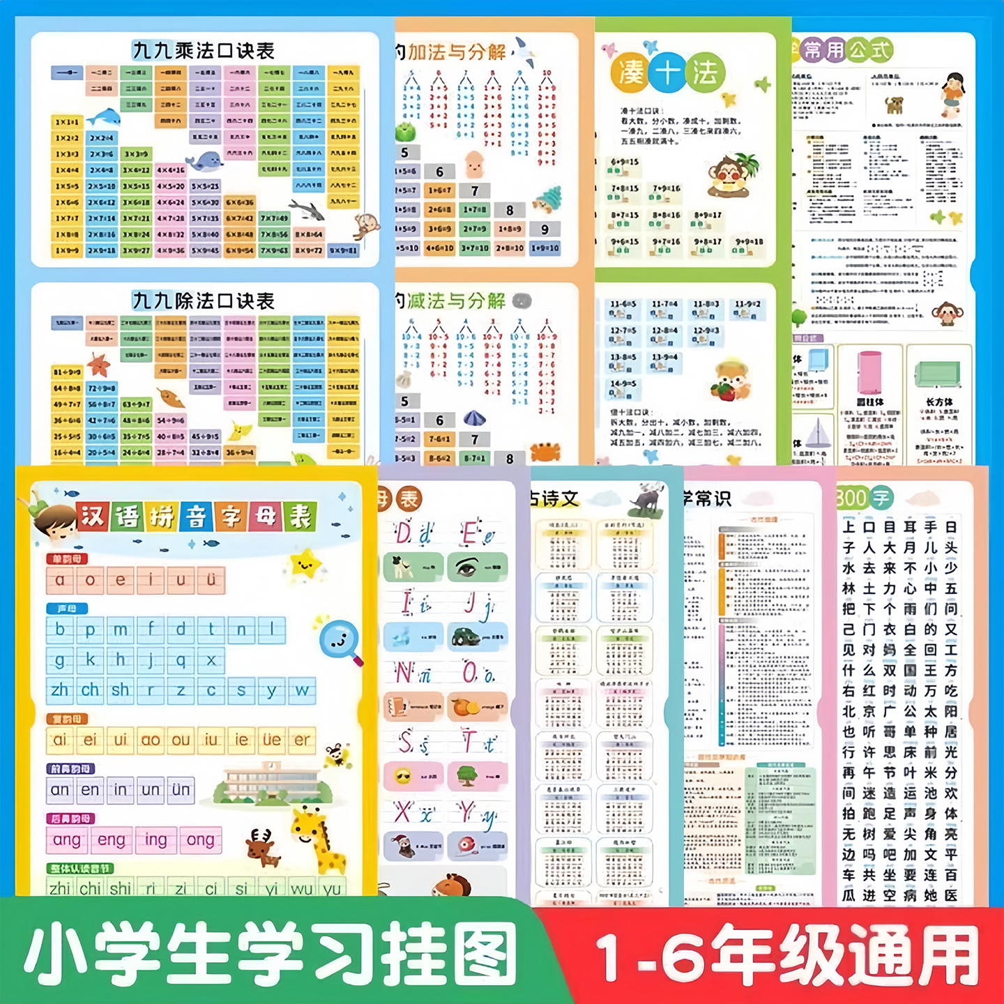 您的位置:他他商城  >   >  【全套9张】高清儿童学习挂图全套拼音字母古诗乘除加减口诀表XB