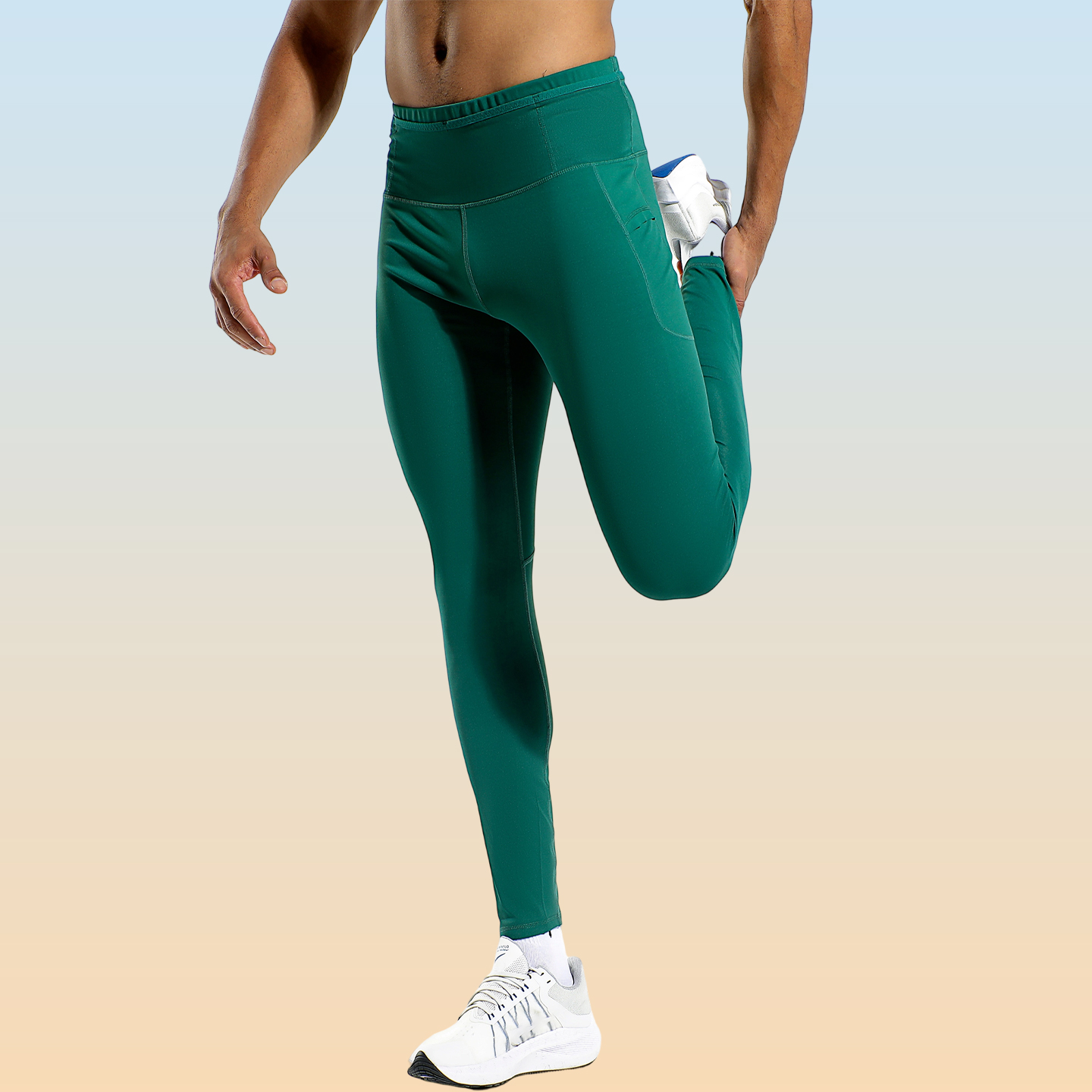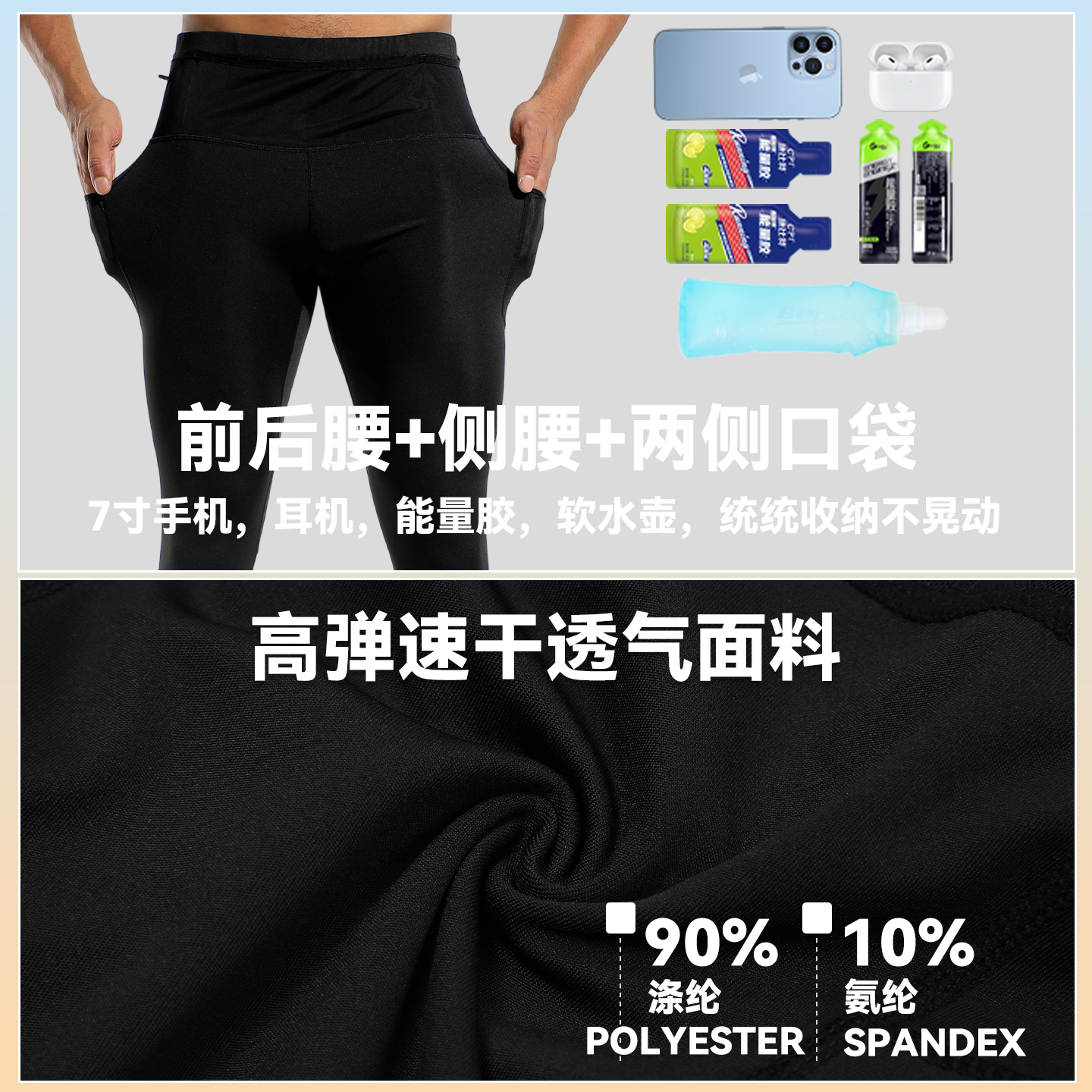 专业马拉松跑步长裤男速干腰包裤高弹健身运动训练压缩裤可放手机