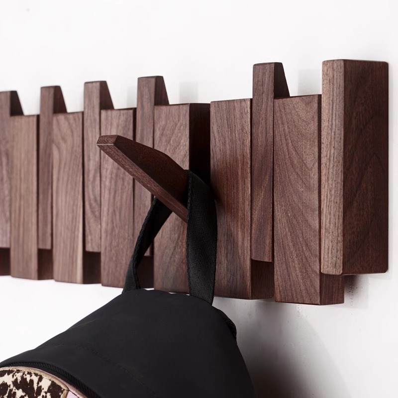 实木挂衣钩衣架壁挂墙壁衣帽钩入户免打孔进门玄关黑胡桃琴键挂钩 - 金茂山楂商城