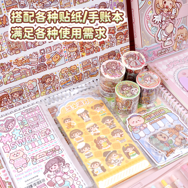 duga多加小麻薯新款手账胶带手帐套装礼盒咕卡贴纸女孩儿童贴画全套整卷大礼包离型本手账本素材随心配胶带 - duga多加旗舰店
