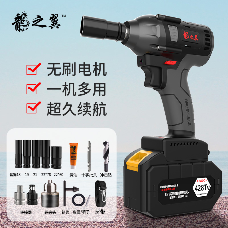 无刷电动扳手锂电充电扳手冲击汽车修脚手架子工木工筒风炮 - 海发湖鲜馆