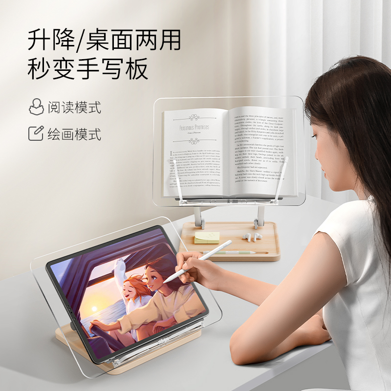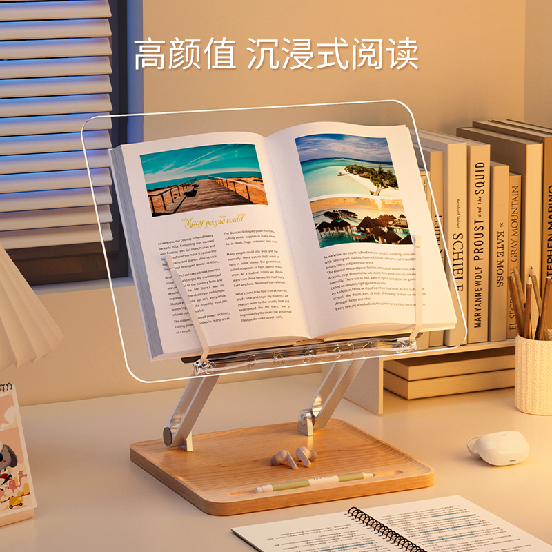 埃普桌面阅读架儿童书架透明学习支架可升降读书看书翻书神器书夹固定书本书桌台面多功能ipad平板支架写字 - 埃普办公用品专卖店