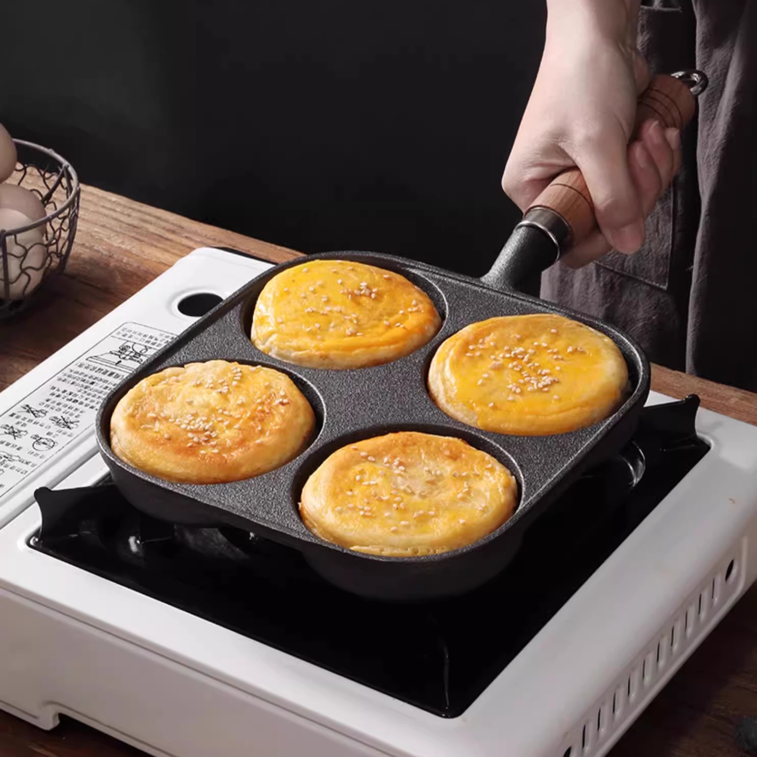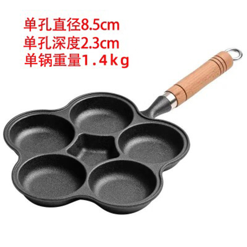 家用早餐煎蛋锅铸铁四孔六孔煎蛋神器平底无涂层不粘锅蔬菜饼模具 - 尧乡铁器铸铁锅厨具