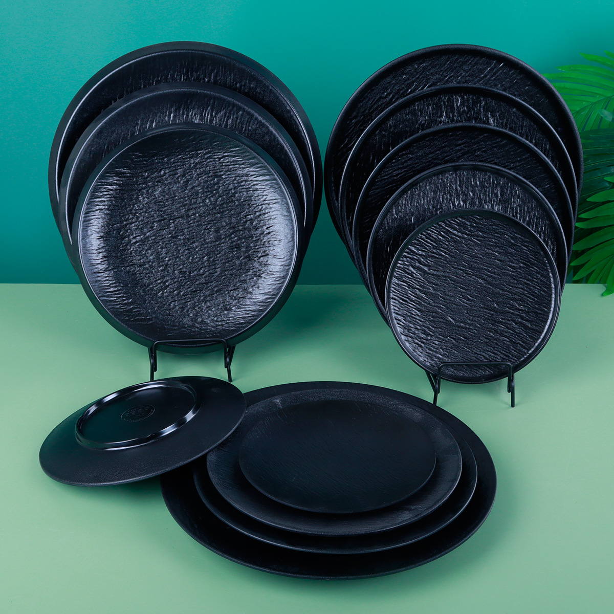 密胺黑色磨砂圆形烧烤盘子商用圆盘烤肉店配菜盘仿瓷碟子塑料餐具 - 广州市华兴酒店用品店