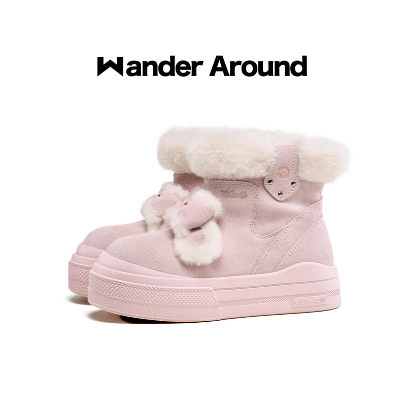 Wander around厚底增高6cm可拆卸蝴蝶结防水保暖雪地靴