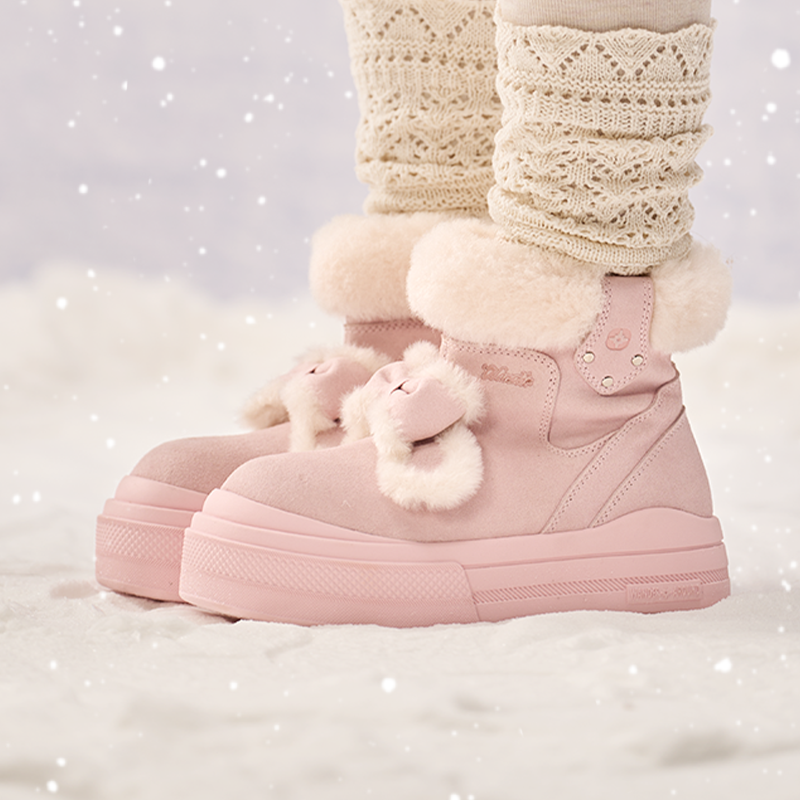 您的位置:他他商城  >   >  Wander around厚底增高6cm可拆卸蝴蝶结防水保暖雪地靴