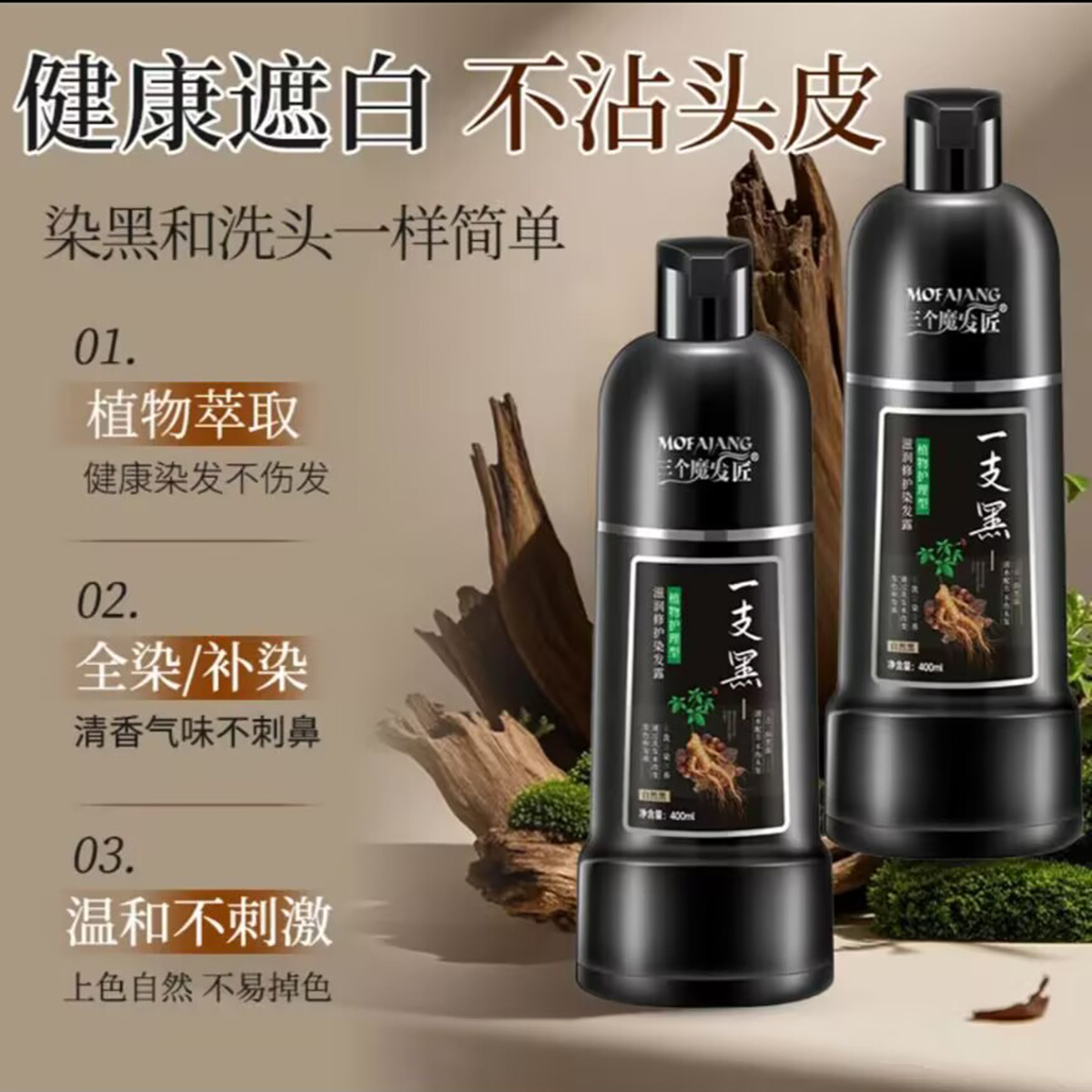 三个魔发匠一支黑染发膏官方正品温和不刺激持久固色盖白发黑发剂 - 中医养生美容世家