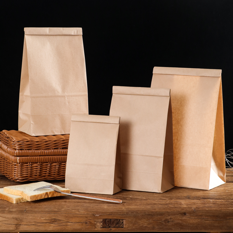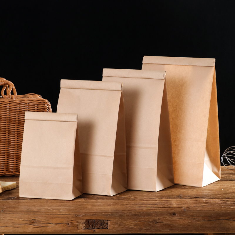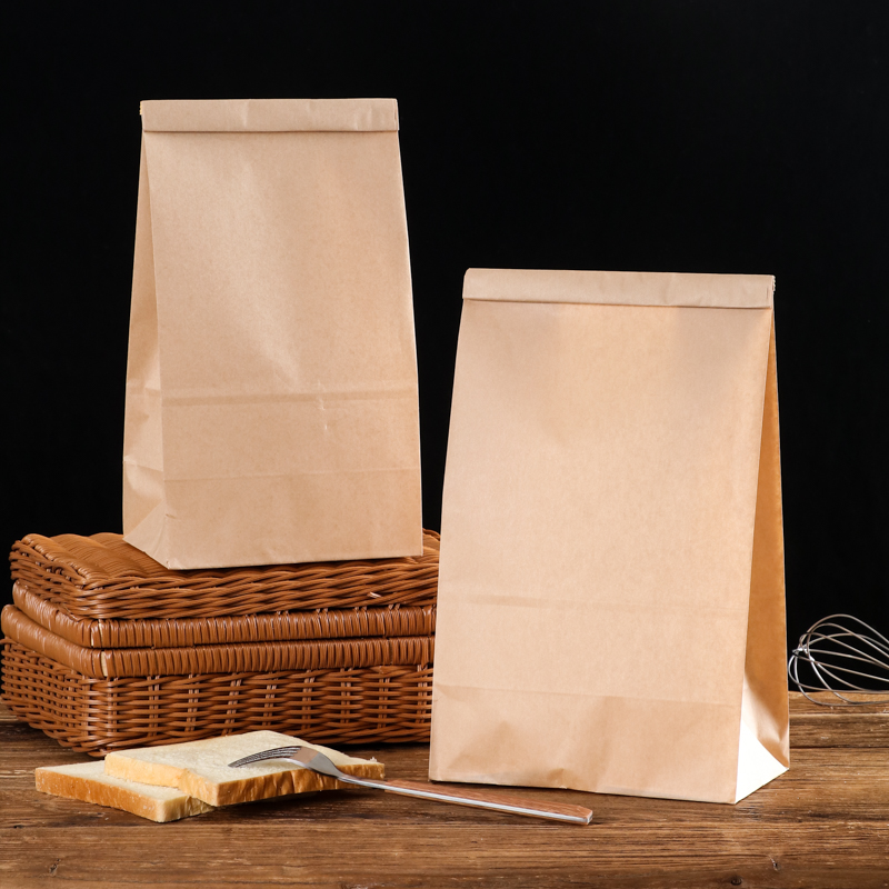 铁丝封口无印刷方底袋一次性牛皮纸袋简约包装袋防油淋膜纸袋50个 - 协恒旗舰店
