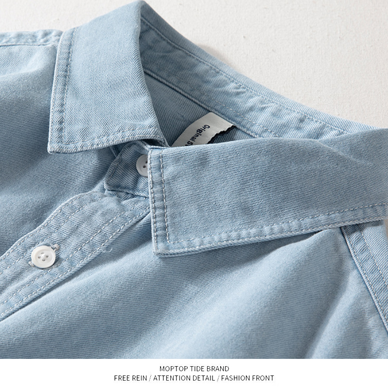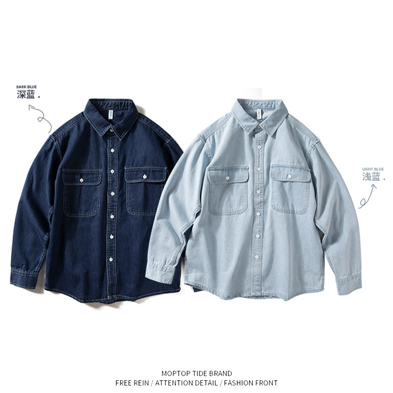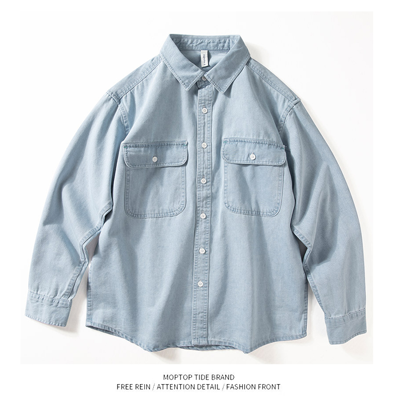 WH先生牛仔衬衫男长袖春秋款宽松美式休闲衬衣青春复古简约外套 - WH先生原创设计