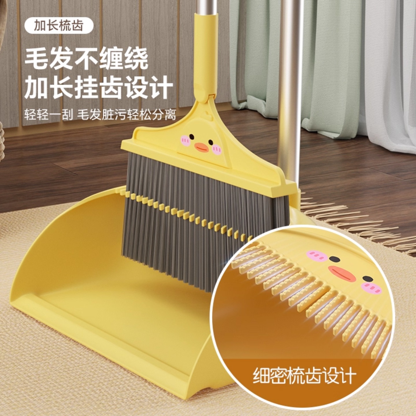 可爱鸭扫把套装2023新款家用软毛扫地笤帚捎把刮水器扫帚簸箕组合 - 居家家旗舰店