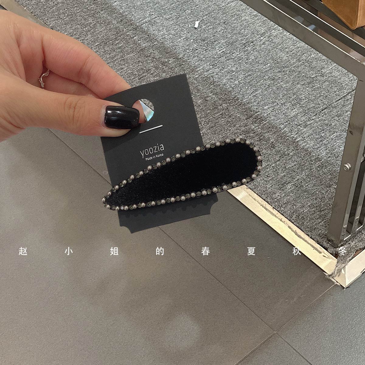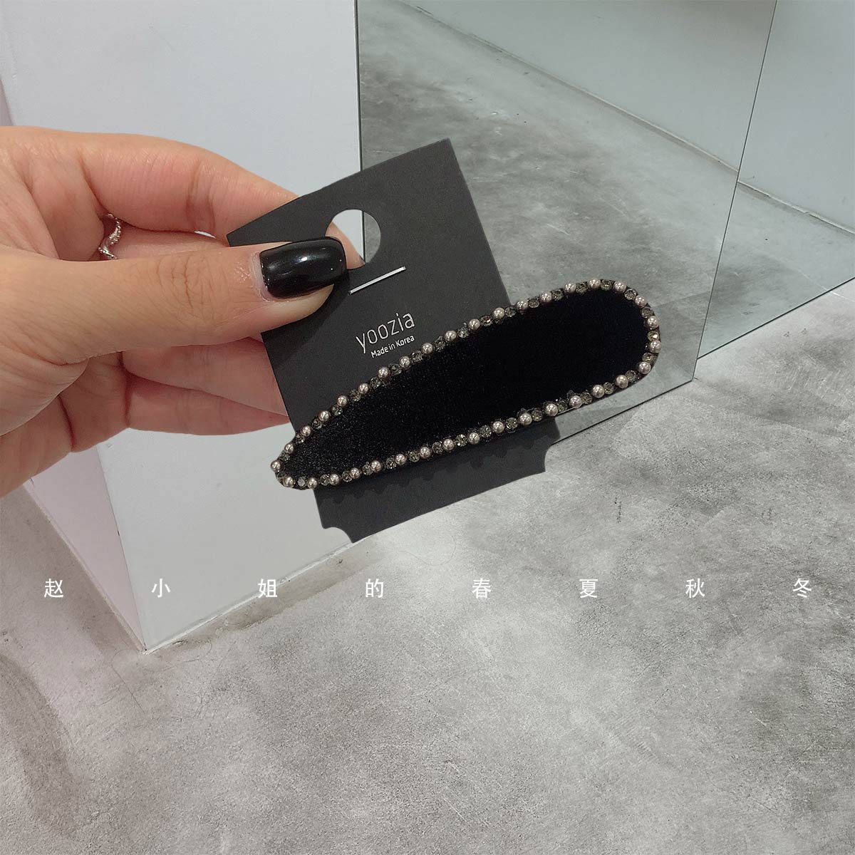 您的位置:他他商城  >   >  小众设计发饰头饰2025新款鸭嘴夹百搭气质刘海夹水滴黑色丝绒发夹