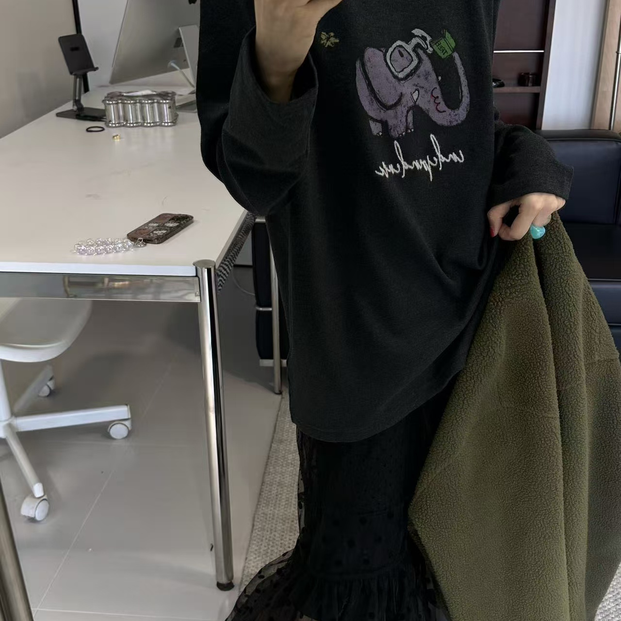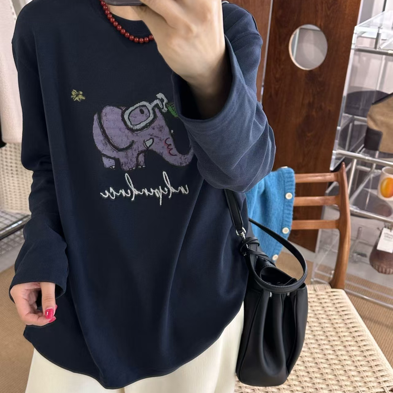 您的位置:他他商城  >   >  one26118冬款可爱圆领大象印花长袖T恤女加绒宽松百搭打底衫上衣
