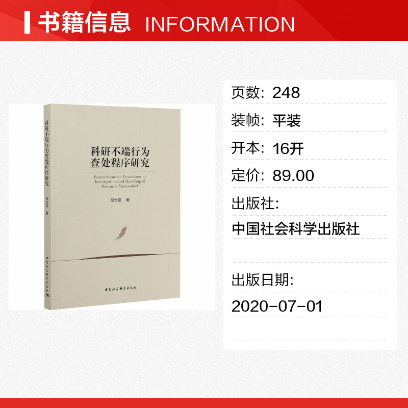 科研不端行为查处程序研究 胡金富 著 人口学社科 新华书店正版图书籍 中国社会科学出版社 - 新华在线图书专营店