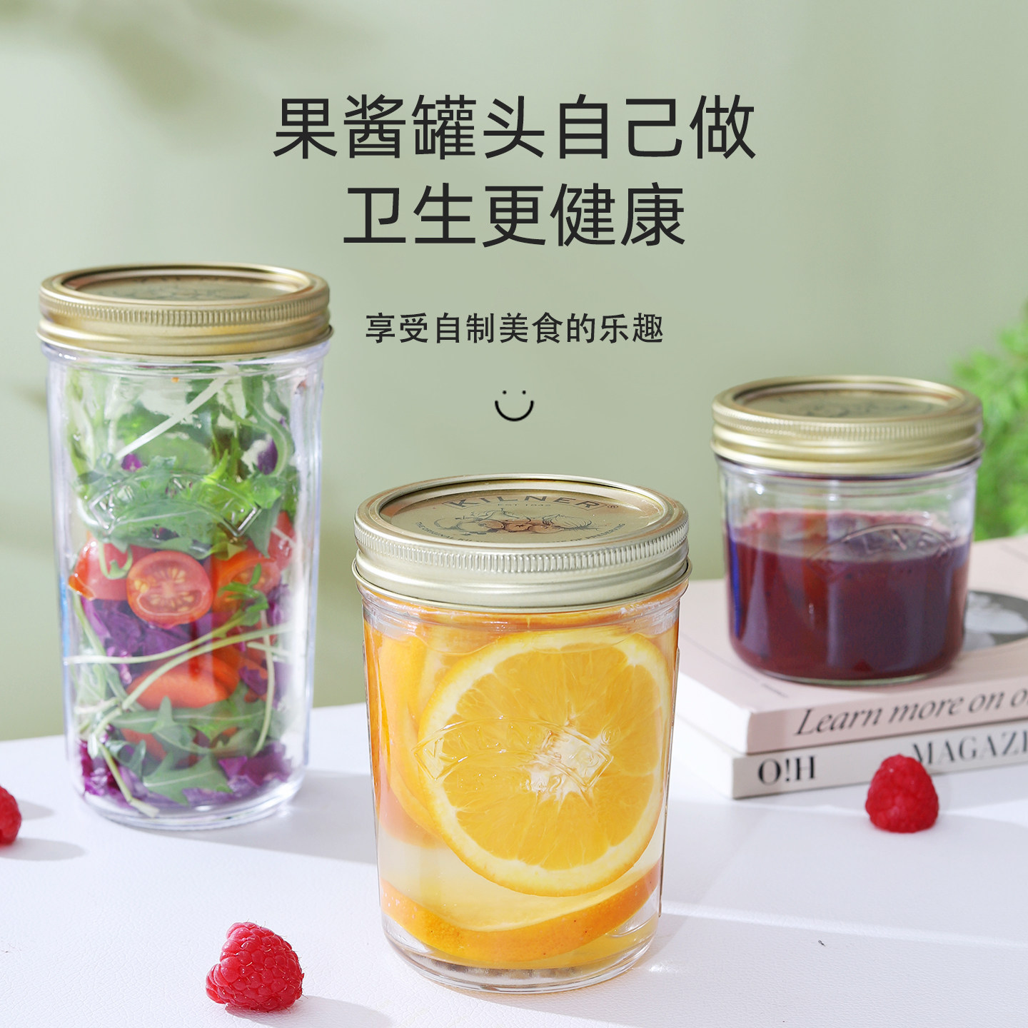 英国Kilner食品级玻璃密封罐加厚果酱瓶梅森瓶隔夜燕麦杯宽口家用