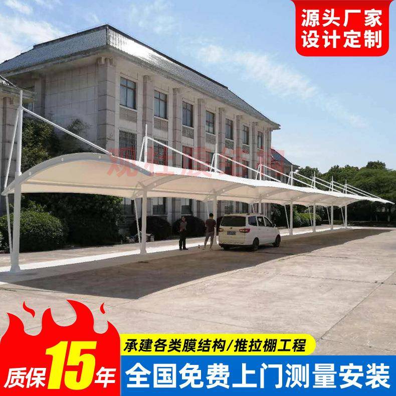 工厂小区钢膜结构停车棚泰州户外遮阳汽车篷轿车简易张拉膜雨蓬 - 销售459945