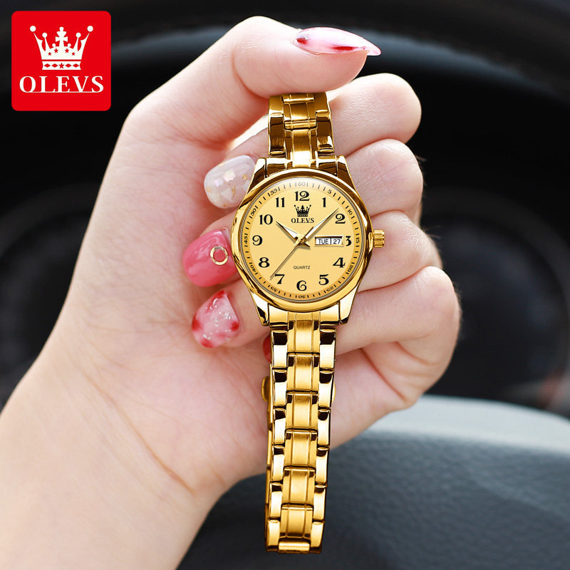 正品牌中年老年人女表手表女款机械表女全自动石英名数字盘黄金色 - OLEVS欧利时旺福专卖店