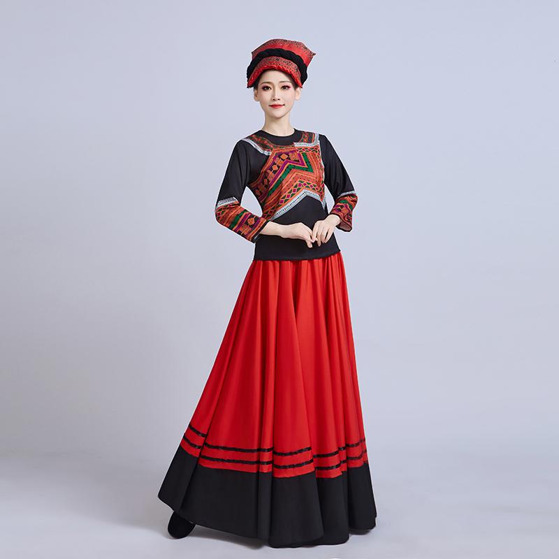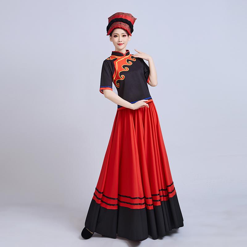 彝族舞蹈服女成人彝族火把节少数民族舞台大摆裙阿杰鲁表演演出服