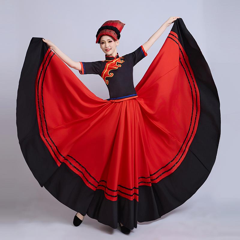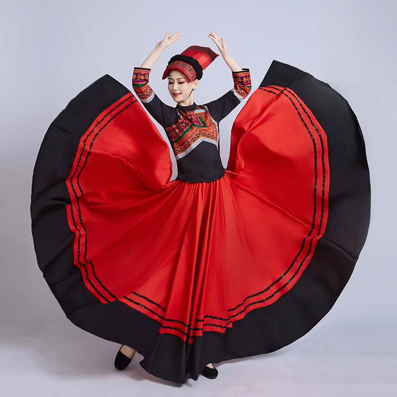 彝族舞蹈服女成人彝族火把节少数民族舞台大摆裙阿杰鲁表演演出服 - 傲天骄旗舰店
