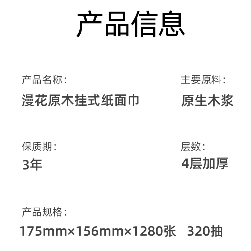 您的位置:他他商城  >  居家  >  漫花抽纸悬挂式卫生纸家用实惠装纸巾纸抽整箱餐巾纸大包厕纸擦手