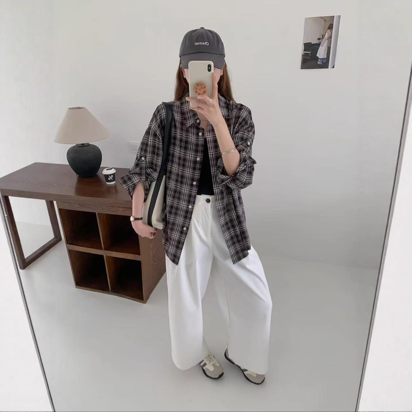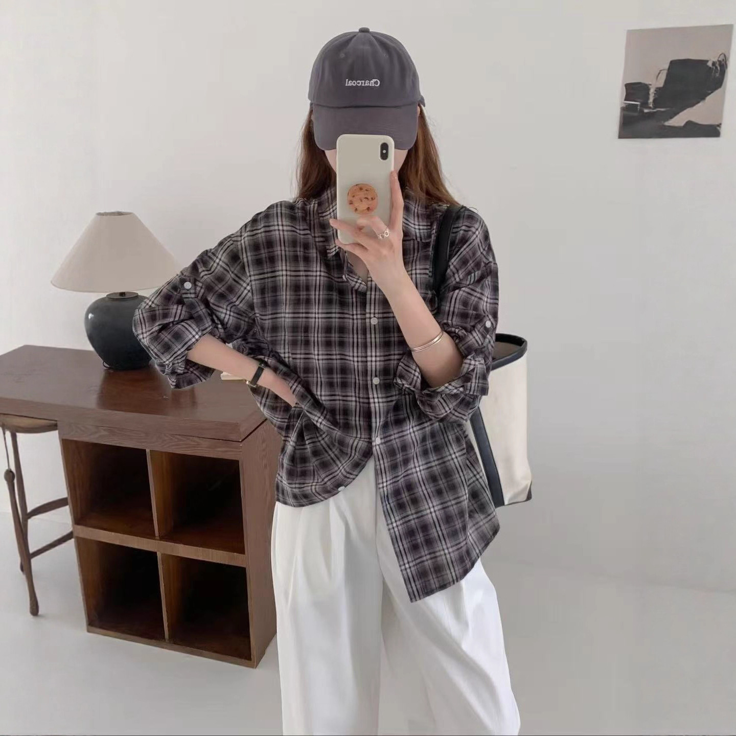 2025年秋款衬衫格子衬衣上衣衬衣宽松休闲韩版学院风衬衫亲肤上衣 - JJ高端设计师品牌店