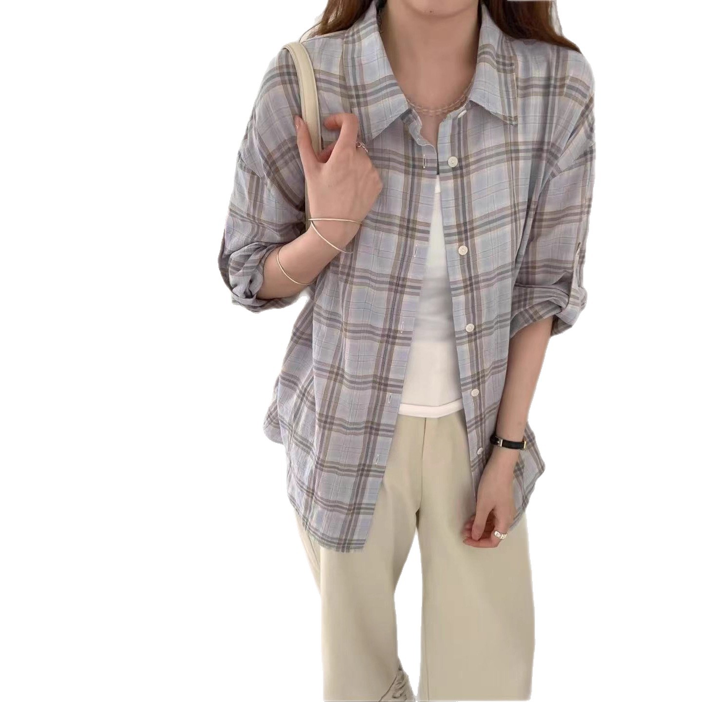 您的位置:他他商城  >   >  2025年秋款衬衫格子衬衣上衣衬衣宽松休闲韩版学院风衬衫亲肤上衣