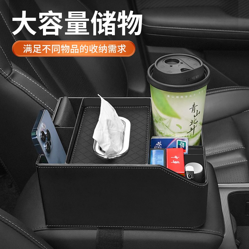 车载扶手箱储物盒收纳盒纸巾盒汽车中间置物架高V档多功能水杯架